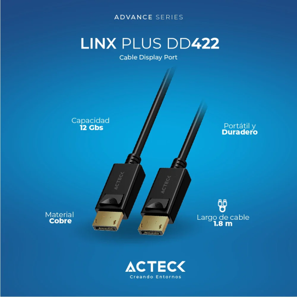Acteck Cable DisplayPort DD422 DisplayPort Macho - DisplayPort Macho, 1.8 Metros, Negro
