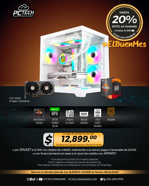 PC GAMER AMD Ryzen 5 5500, RTX 5060 8GB, 16GB RAM, 1TB SSD