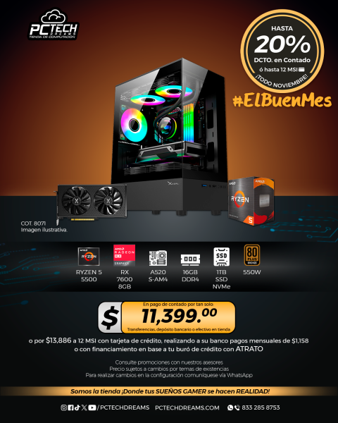 PC GAMER AMD Ryzen 5 5500, RX 7600 8GB, 16GB RAM, 1TB SSD