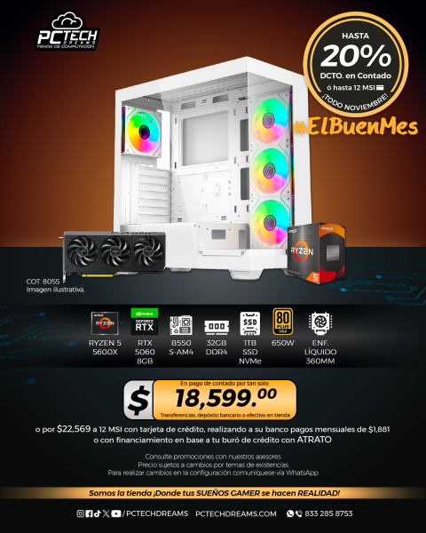 PC GAMER AMD Ryzen 5 5600X, RTX 5060 Prime 8GB, 32GB RAM, 1TB SSD