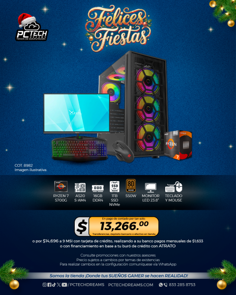 PC GAMER AMD Ryzen 7 5700G, 16GB RAM, 1TB SSD, Monitor Led 23.8", Teclado, Mouse