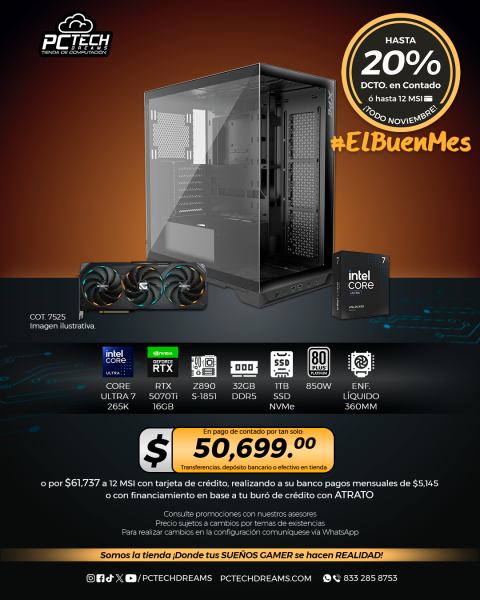 PC GAMER INTEL Core Ultra 7 265K, RTX 5070Ti 16GB, 32GB RAM, 1TB SSD