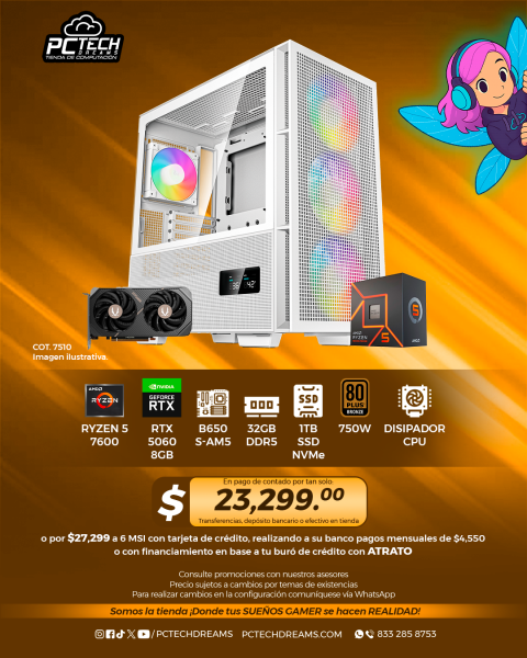 PC GAMER AMD Ryzen 5 7600, RTX 5060 8GB, 32GB RAM, 1TB SSD